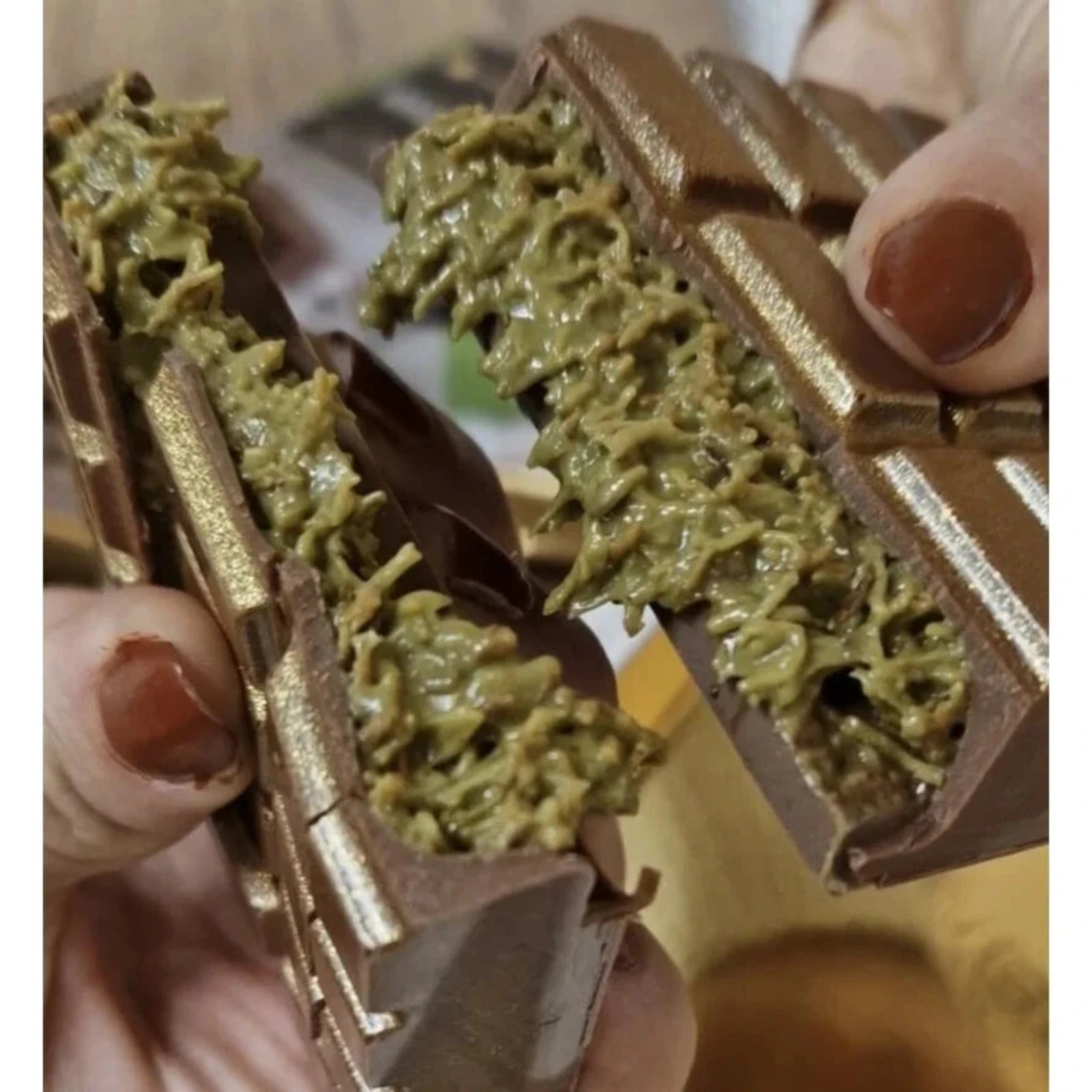 Bu özel çikolata, geleneksel tatları modern bir yorumla birleştiren Dubai Çikolatamız ev yapımıdır.
